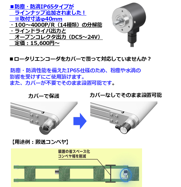 ロータリーエンコーダ 防塵・防滴IP65タイプ